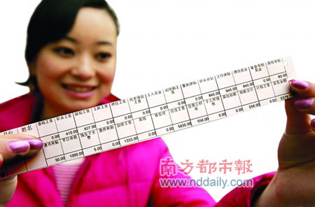 “日前,廣州一家報紙在一個討論薪酬問題的版面上用了一張新聞圖片,網(wǎng)友驚訝地發(fā)現(xiàn)圖片中人物手持的工資條顯示其當(dāng)月收入5935元,個人所得稅一欄卻顯示為0.00.因?yàn)楣べY條上有職務(wù)工資、級別工資、警銜津貼等項目,很多網(wǎng)友認(rèn)為這是一張廣州市公務(wù)員的工資條,并推論公務(wù)員不用交個稅。
