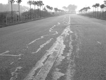 黃陂區(qū)劉(佐輔)大(咀)公路原為四級(jí)公路,全長(zhǎng)18公里。2005年12月,該路動(dòng)工改建為二級(jí)公路,整個(gè)工程投資3240.7萬(wàn)元。2006年12月,劉大公路建成通車。然而,該路建成不到一年,路面就出現(xiàn)縱橫交錯(cuò)的裂縫,每隔一段就出現(xiàn)一個(gè)大補(bǔ)丁,部分地段還出現(xiàn)了地基沉降,導(dǎo)致路面下雨天積水。2007年11月,該路開始進(jìn)行修補(bǔ),主要方式是對(duì)部分路段挖開重新施工,在一些裂縫處灌瀝青。