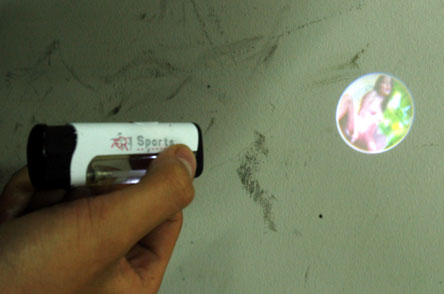 記者注意到,“艷照”打火機(jī)側(cè)邊上有個(gè)白色的小開關(guān),底座還鑲有一個(gè)很小的幻燈鏡。只要輕推開關(guān),就會(huì)從幻燈鏡里射出一道光束,當(dāng)光速投在稍微陰暗的物體上,就形成了一幅裸體圖。這些打火機(jī)表面上沒有印有任何有關(guān)生產(chǎn)廠家和生產(chǎn)日期的信息,只有一些簡(jiǎn)單的圖案和一英文單詞。