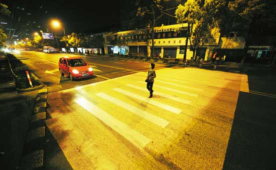 “現(xiàn)在行人過斑馬線,真正感到安全了,杭州交警想得真周到!弊蛱,騎車經(jīng)過湖墅南路的蘇先生驚喜地發(fā)現(xiàn),白色的斑馬線變了顏色。