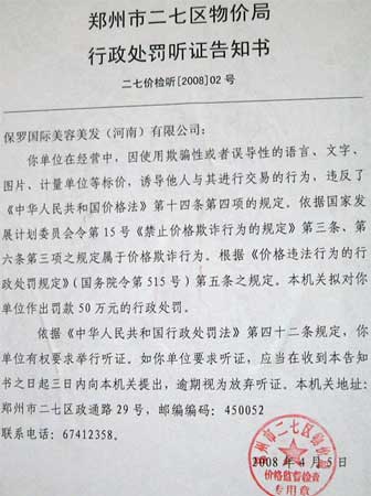 告知書上稱,“你單位在經(jīng)營中,因使用欺騙性或者誤導性的語言、文字、圖片、計量單位等標價,誘導他人進行交易的行為,違反了《價格法》第十四條第四項的規(guī)定,屬于價格欺詐行為……本機關擬對你單位作出罰款50萬元的行政處罰。”