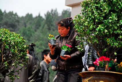 趙亞輝在博客上說,自己正在參加由人民日?qǐng)?bào)組織的跨時(shí)代回訪———“重走中國(guó)西北角”,4月4日正好趕上了一年一度在黃帝陵舉行的清明節(jié)公祭黃帝大典。自己祭拜完黃帝陵后,下山時(shí)再次途徑舉行大典的軒轅殿,卻被眼前的景象驚呆了:“廣場(chǎng)上不少人手里抱著一盆盆、一束束花,還有很多人正在搶著把擺放在大殿上下臺(tái)子上的小花盆拿走。
