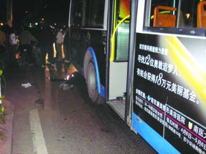 “快看!公交車下躺著一個(gè)人,血直冒,一定是被撞了!”前晚9點(diǎn),中山北路大方巷公交站臺附近,突然發(fā)出驚叫聲。路過市民紛紛聚攏過來,只見距離公交站臺四五米處,一輛31路公交車頭頂路邊,車尾朝外,右后輪下,一名青年人赫然倒臥在地,后腦勺緊緊挨著橡膠輪胎,猩紅的鮮血噴涌而出,染紅了大片地面。
