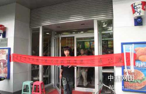 在派出所3次出警無(wú)效下,憤怒的陳女士做出了在肯德基店門(mén)口 拉橫幅攔顧客的舉動(dòng)。而肯德基方面更是以鎖住店門(mén)把陳女士連同當(dāng)時(shí)還在就餐的10幾名顧客一起困在了店堂里。時(shí)間長(zhǎng)達(dá)一個(gè)多小時(shí)。最后還是在圍觀(guān)群眾的憤怒聲中才打開(kāi)店門(mén)。