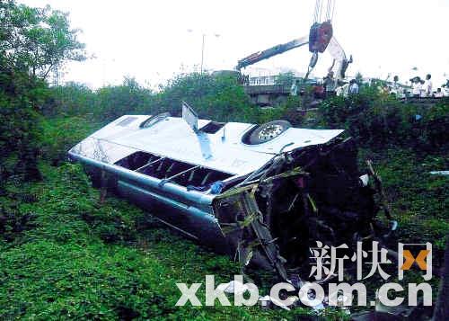 昨日上午,一輛粵港直通大巴從廣州中國大酒店出發(fā),經(jīng)廣深高速前往香港灣仔,9時(shí)13分在東莞厚街白濠路段,與一輛貨柜車追尾后失控,撞破路邊護(hù)欄墜入十多米下的排水溝,車上26名乘客不同程度受傷,其中部分是剛參加完廣交會(huì)的外籍客商,大巴司機(jī)麥某重傷后送院搶救,于下午5時(shí)不治身亡。受事故影響,該路段交通堵塞4個(gè)多小時(shí),被堵的車龍長達(dá)5公里。經(jīng)現(xiàn)場(chǎng)勘查,初步懷疑大巴車速過快導(dǎo)致車禍。