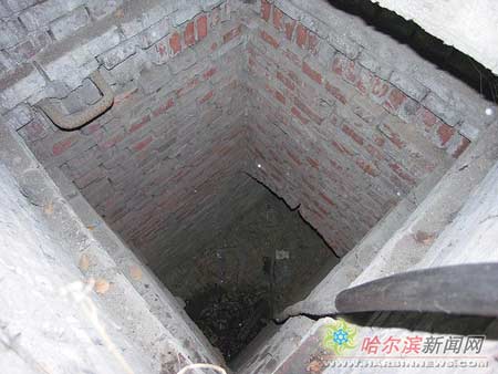 龍江橡膠廠早已停產(chǎn),部分廠房正在拆遷。院內(nèi)有一棟灰色的五層樓,據(jù)稱(chēng)當(dāng)年曾是日本憲兵隊(duì)所在地。在樓南側(cè)50米遠(yuǎn)處有一平房,原來(lái)是龍江橡膠廠的生產(chǎn)車(chē)間。地道口就在距離平房不足50米的草地內(nèi),一米見(jiàn)方,上面覆蓋著石板和苫布等雜物。移開(kāi)上面的石板,一股夾雜著濃重霉味的潮氣從洞口噴涌而出。里面黑洞洞的,打開(kāi)手電往里看,深近10米。地道頂端距離地面約5米,地道有一人來(lái)高,紅磚砌成,頂部為圓拱形。