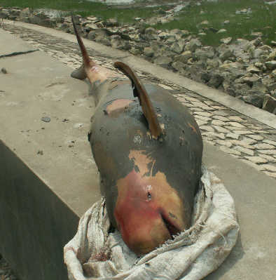 昨天,本市(上海)崇明島發(fā)現(xiàn)一只1.82米長,擱淺死亡的罕見巨型江豚,一些當(dāng)?shù)貪O民撿獲后,原打算運(yùn)回家中作為美食,被邊防民警及時(shí)發(fā)現(xiàn)并制止。
