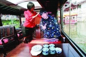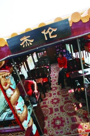 “杰倫號(hào)”上最特別的就是一幅與杰倫同比例的大幅紙質(zhì)模特,笑容滿面地坐在原來(lái)杰倫坐的位置上,前面的茶幾上還放著杰倫品嘗過(guò)的狀元豆、雨花茶。據(jù)稱,這個(gè)“模特”可以供游人照相。