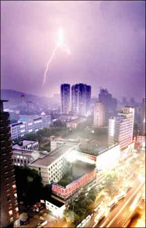 前日晚上11時(shí)以后,江城突然狂風(fēng)大作。昨日零時(shí)開(kāi)始,伴隨著閃電和轟隆隆的雷聲,漢口和武昌最先開(kāi)始下起暴雨。截至昨日中午,不同程度的暴雨還在持續(xù)。