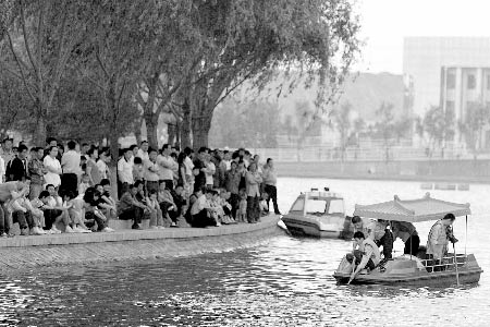 5月3日中午12時(shí)35分許,鄭州市特巡警二大隊(duì)接警,稱一小孩掉進(jìn)帝湖了。