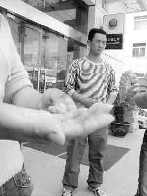 昨天,王麗和小姑栗麗再次來到景明佳園內(nèi)擺攤。上午11點,王麗準備到小區(qū)菜場買菜,不料剛走幾步遇上了前天和她發(fā)生沖突的一名城管人員,當即攔住對方!拔艺f手指被他弄得伸不直了,他竟然拽住我就打!
