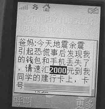 借著人們對(duì)四川地震災(zāi)區(qū)獻(xiàn)愛心的熱忱,一些不法分子也打起發(fā)短信騙錢的主意。