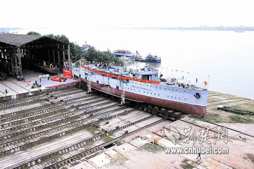 1938年,中山艦在金口水域遭遇日軍6架飛機(jī)轟炸,悲壯沉江。1997年2月,在拖輪的拖動(dòng)下,中山艦前往湖北造船廠(現(xiàn)改名南華船舶公司)修復(fù),并一直在此陳列展出。