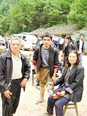 昨天上午開始,也不斷有村民從大山深處爬出來。為了生的希望,這些村民拖家?guī)Э,一路扶持,每個人到達山下的時候都一身泥濘。