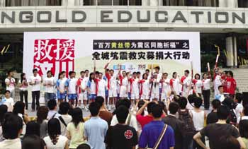 昨日下午2時(shí),由新快報(bào)、廣州電臺(tái)FM102.7、南方電視臺(tái)、新浪網(wǎng)四大媒體攜手廣東省慈善總會(huì),在正佳廣場(chǎng)西北門和廣東新快報(bào)社主樓前(天河路533號(hào)僑鑫教育大院)兩大主場(chǎng),舉辦“祈福同胞,愛(ài)心飛揚(yáng)———百萬(wàn)黃絲帶為震區(qū)同胞祈福之全城抗震救災(zāi)募捐大行動(dòng)”;顒(dòng)還在廣州崗頂好又多、天河城、江南西-廣百新一城、天河購(gòu)書中心-維多利亞廣場(chǎng)、正佳廣場(chǎng)、友誼商店-世貿(mào)、荔灣廣場(chǎng)南門-上下九、中華廣場(chǎng)-流行前線、北京路-廣百、新光廣場(chǎng)-康王路、越富大廈等11個(gè)繁華地段設(shè)50個(gè)流動(dòng)募捐點(diǎn),廣州青年志愿者協(xié)會(huì)還派出超過(guò)300名志愿者。