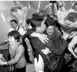 “我們終于活著回來了。”昨晚11點(diǎn)30分,首都1號航站樓,38名北京游客搭乘CZ3904航班平安抵京,迎接他們的是親人激動的擁抱和淚水。據(jù)了解,這38名游客是本市首個從四川災(zāi)區(qū)返回的大型旅游團(tuán),在成都開往九寨溝的途中,他們遭遇地震受困茂縣,度過了“與世隔絕”的56個小時。