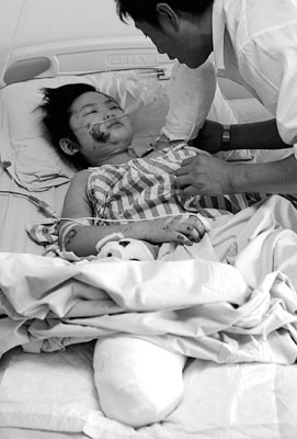 “媽媽,我的手腳呢?”這是昏迷4天的羅穎醒來后對媽媽說的第一句話。前日上午10時,看著剛剛醒來身體還很虛弱的女兒,陳樹彬眼眶含著淚看著女兒。母女倆相視幾分鐘后,陳樹彬說:“穎穎,你的左手和右腿受了很重的傷,已經(jīng)被包扎好了,你身體虛弱所以沒有感覺,你傷好了,扯了紗布就有感覺了!甭犞拮优c女兒的對話,坐在一旁的袁海轉(zhuǎn)身,抹了一把眼淚,但隨即轉(zhuǎn)過身,看著女兒望過來的目光強(qiáng)顏微笑。(特派記者 李雙全 鐘臻)