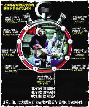 湖南的醫(yī)療隊(duì)介紹,7時(shí)許,老太太被抬上救護(hù)車緊急送往彭州醫(yī)院。從12日下午被埋開始到被解救的196小時(shí),老太太沒有吃任何東西,只是間歇地喝了點(diǎn)雨水。醫(yī)生介紹,老太太神志比較清晰,已被送到成都華西醫(yī)院治療。