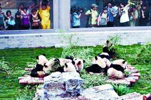 從轉運成都,吳代福一直守護著大熊貓。昨天,在專機貨艙內,他一直陪著大熊貓,它們表現(xiàn)得都很好,沒有出現(xiàn)不良反應。到達動物園后,8只大熊貓一下子都跑到了運動場上,看來,它們對新家很喜歡,也較適應。 目前,最擔心的是8只大熊貓來京后是否能盡快適應這里的環(huán)境。這包括氣溫、周圍的噪聲等。尤其是氣溫,現(xiàn)在看來,北京比四川要高一些,好在館內設施很先進,不但有空調,還有遮陽的幕布。