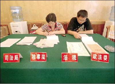 下午6點(diǎn)左右,除了公安局和失蹤人口登記處,其他單位都下了班,準(zhǔn)備去食堂吃飯。尹艷和廖明艷將桌子上的紙杯、廢紙都收拾了,并把椅子排好。她們說原來在北川就是如此,4天下來,她們和同事已經(jīng)習(xí)慣把這兒叫做辦公室,而不再是之前的天龍賓館。(記者 唐駿 穆奕)