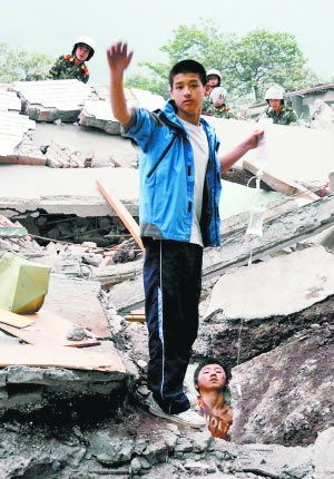 李陽(yáng)并不特別出眾,如果不是這場(chǎng)大地震,他的日子應(yīng)該會(huì)平靜流過。但是這個(gè)男孩在這場(chǎng)大地震中“非比尋常”的舉動(dòng),卻成為一個(gè)關(guān)于生命和希望的符號(hào)。