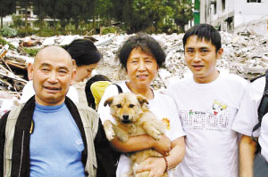 汶川大地震中,有兩只狗狗感動(dòng)了全中國(guó)人。近日,這兩只在彭州銀廠溝一直舔著被困的王友瓊老人的嘴唇,使其在被困196個(gè)小時(shí)仍得以生還的“義犬”——“前進(jìn)”和“乖乖”,被“愛之家”小動(dòng)物保護(hù)中心在彭州當(dāng)?shù)卣业,并被運(yùn)回成都。至此,此前網(wǎng)上盛傳的這兩只“義犬”被殺、被吃的傳聞被打破。