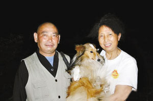 通過智富,“愛之家”找到了黃色雜有黑毛的中華田園犬“前進(jìn)”和黃白色長(zhǎng)毛、背上有一撮黑毛、不足一歲的喜樂蒂狗“乖乖”。徐先生說,在將“前進(jìn)”和“乖乖”帶離災(zāi)區(qū)時(shí),當(dāng)?shù)睾芏啻迕穸技娂妵蟻硪蠛蛢芍弧傲x犬”合影。