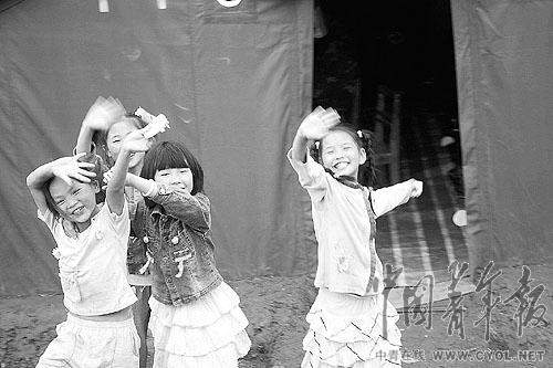 “六一”節(jié)快到了,災(zāi)區(qū)的孩子們怎么樣了?房子倒了,玩具沒了,學(xué)校停課了,他們該干什么呢?帶著這些問題,記者走訪了幾個受災(zāi)群眾安置點。出乎意料的是,盡管在帳篷和活動板房這種簡陋的條件下,孩子們的樂觀仍讓人動容。
