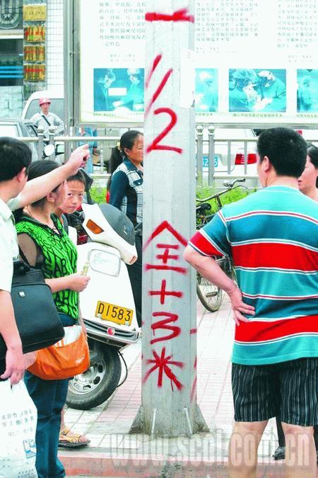 在政府院內(nèi)右側(cè)的三層小樓上,畫出了堰塞湖水潰壩進(jìn)入城區(qū)的比例刻度,有1/3潰壩、1/2潰壩和全潰壩三條線。記者看到,損失最小的1/3潰壩,洪水淹沒線在一樓中上部,距地面高約2.3米。1/2潰壩,洪水將淹沒二樓小部分,全潰壩則淹沒整個(gè)二樓,殃及三樓。