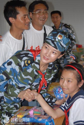 海軍少將宋祖英赴四川綿竹和小學生過兒童節(jié)(圖)(2)