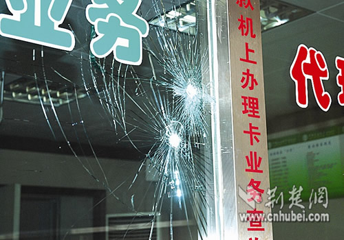 從現(xiàn)場(chǎng)情況看,有六塊防彈玻璃受損,大廳空調(diào)、查詢機(jī)、密碼器、叫號(hào)機(jī)、兩臺(tái)電腦以及大堂經(jīng)理辦公桌,全部被歹徒破壞,初步估算直接損失30余萬(wàn)元。