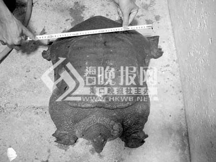 昨天下午,記者從尖峰嶺林業(yè)公安局獲悉,有人幾天前在天池湖釣到一只大甲魚,重達(dá)40斤。這樣大的甲魚實(shí)在罕見,該局已“收養(yǎng)”這只甲魚,并將擇日放生。