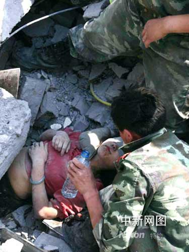 到下午5點(diǎn)鐘左右的時(shí)候,搜救官兵已經(jīng)能夠看到袁藝的頭發(fā)了,這讓所有的人不覺精神為之一振。為了使袁藝能夠保持清醒,官兵們不時(shí)的陪說話。交談中,孝順的袁藝一直在打聽父母和家人的情況,“他們肯定想不到我還活著”,袁藝話中透露著對(duì)劫后余生的無限欣喜與感動(dòng)?吹搅斯俦鴤兙仍男量啵瑘(jiān)強(qiáng)的袁藝反倒不住的安慰不敢加快挖掘速度生怕碰到她傷口的官兵們:“你們加油,我也加油,我不怕疼......”