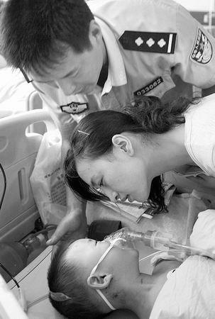 第二天凌晨,郎洪東趕到綿陽市404醫(yī)院,與吳曉紅和身體多處受傷的兒子在災后第一次見面了。這名很少掉眼淚的硬漢禁不住熱淚盈眶。“爸爸,我好想你!”小郎錚仰頭親了一下父親滿帶淚痕的臉頰,要求爸爸給他喂飯。