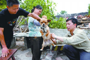 6月的第一周,一群來自北京的志愿者,在地震重災(zāi)區(qū)之一的綿竹遵道鎮(zhèn),展開了針對動物防疫的救援行動。