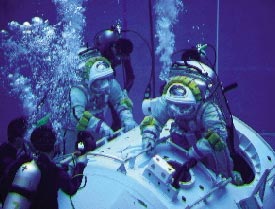 根據計算,到約十幾米的深度,水的浮力可以基本抵消航天員的重力,達到一種模擬失重的狀態(tài)。航天員就在這個深度在飛船的模型中進行訓練。通常這種訓練至少需要在水下呆6個小時以上,對于航天員是一種比較大的考驗。(記者 柳志卿)