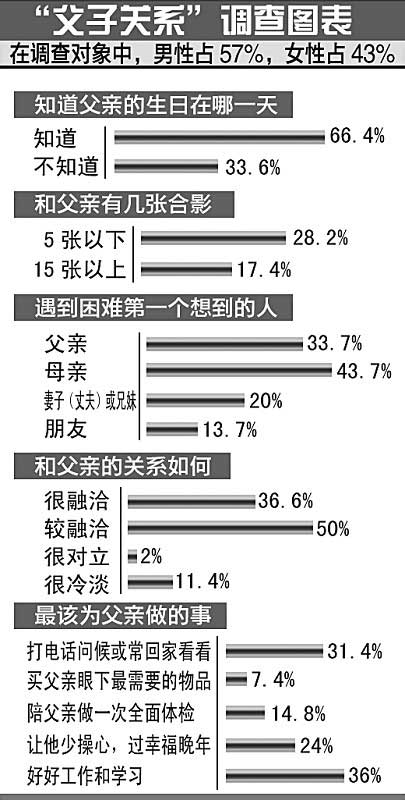 “父親節(jié)”即將到來之際,本報在50個社區(qū)發(fā)放了千份“父親節(jié)調(diào)查問卷”,結(jié)果顯示