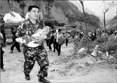 5月12日汶川大地震一天后的13日中午,江蘇黃埔再生資源利用公司董事長(zhǎng)陳光標(biāo)就已從武漢趕到了都江堰,他和公司員工們帶過去的60臺(tái)挖掘設(shè)備,“第一時(shí)間”趕到災(zāi)區(qū)。在接下來的20多個(gè)日夜,陳光標(biāo)寸步?jīng)]有離開,他親自救出了12名幸存者,背出了208個(gè)遇難孩子的遺體……陳光標(biāo)不是“中國首富”,連“南京首富”都算不上,但去年他捐出了1.8億元,名列2008年中國慈善排行榜榜首,被稱為“中國首善”。