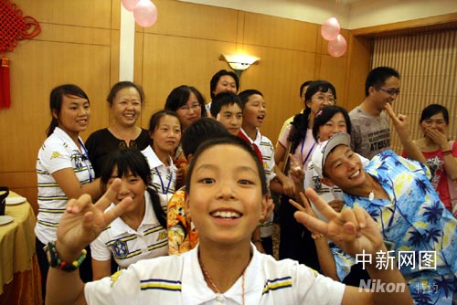 晚上9點10分,旅美華僑林鴻飛女士從相館拿回大家相片,孩子們拿到相片后,爭著讓愛心叔叔阿姨簽名留電話,還有的孩子干脆讓愛心叔叔阿姨就在自己白色衣服上簽名留言。當(dāng)海南電視臺記者高丹拿著一疊相片來到孩子們中間時,“高丹姐姐,我也送你一張合影照片!”只有幾歲的東東嘻笑著小臉,把一張集體合影送到高丹手上……