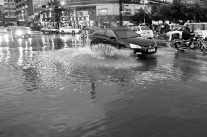 大雨過后,西園路上積水嚴(yán)重。 趙偉攝
