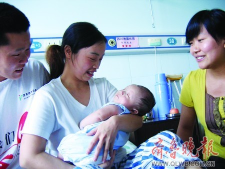 “兒子又長胖了,他干媽照顧得太好了。 ” 18日下午,在濟(jì)南中心醫(yī)院,來自四川災(zāi)區(qū)的傷員張玉瓊從鄧陽手中接過孩子后,連稱孩子又長了。剛到張玉瓊懷里的時候,小家伙好像還不太習(xí)慣,雖然不會說話,但眼睛卻一直盯著鄧陽不愿離開。 在 22 天的時間里,小家伙已經(jīng)把鄧陽當(dāng)成了自己的媽媽。