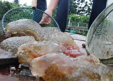 湖中冒出不少有點(diǎn)像水母的不明物體,每個(gè)幾十公斤重,在水里是灰色的,撈上岸變得果凍狀,再過幾天化成一灘水?它們究竟是啥,連生物學(xué)專家也被考倒了。