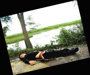 一聽是警察,3名劫匪知道大事不妙,持槍的兩名劫匪慌忙跳下路旁的水坑欲逃跑,駕駛摩托車的那名劫匪企圖駕車逃跑,由于緊張,車頭一扭也撞下水坑中。持槍的兩名劫匪跳下水坑后,其中一人大叫:“干掉他們(警察)!彪S即便轉(zhuǎn)身調(diào)轉(zhuǎn)槍口向著迅速圍捕過來的民警,企圖向民警開槍。就在這千鈞一發(fā)之際,民警果斷扣動(dòng)了扳機(jī)。