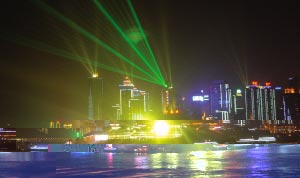 。ㄖ貞c)市城市照明管理局的曾科長表示,6月21日20點40至21點之間,朝天門廣場周圍進行了激光燈表演,但是沒有添加燈光效果的圖案和文字。