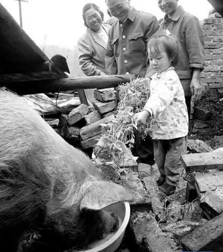 十多個戰(zhàn)士戴上口罩,搬豬圈廢墟上的磚塊、木板。當(dāng)戰(zhàn)士把底層的一塊木板掀開的時候,男主人喊起來:“我的豬還活著!”原來,豬圈有兩層,上面是木板閣樓,堆放著許多木板和木炭。豬圈垮塌,木板閣樓和地面之間留下半米高的夾縫,這頭豬一直就在夾縫下趴著。黃杰注意到,豬圈垮了后,閣樓上堆放的木炭撒了一地,可能這頭豬吃了一個多月的木炭活了下來。至于豬喝什么,有人猜測是雨水。 (成都商報)