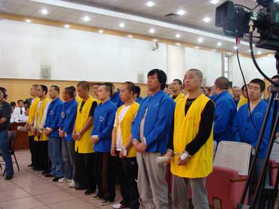 56名被告人在庭審現(xiàn)場。李彥宏/攝
