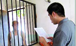 一同前往監(jiān)獄的一位省高院工作人員說,看起來陳雙全的精神不是很好。審判人員很快宣讀完了裁定書,當(dāng)聽到核準(zhǔn)西安市中院的死緩判決時,陳雙全沒有表現(xiàn)出任何驚訝和慌張的表情,顯得比較鎮(zhèn)定,“可能是跟他沒有上訴有關(guān),也可能他根本不知道還有復(fù)核的程序!苯舆^送達回證時,陳雙全看了一遍,“非常仔細(xì),看了好長時間!钡却愲p全在回證上簽完字并摁了手印后,審判人員將一份裁定書隔著鐵欄桿遞了過去,陳雙全再次仔細(xì)地看完了裁定書,然后被帶回。