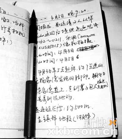 國(guó)家林業(yè)局鎮(zhèn)坪專家組筆錄周正龍等發(fā)現(xiàn)老虎腳印,周拍攝下記錄信息。
