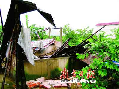 前日下午2時35分許,受熱帶風暴“風神”的外圍環(huán)流影響,高明區(qū)明城鎮(zhèn)明西村委會仁坑村遭受了一股龍卷風的襲擊,導致40畝水稻倒伏,20間房屋遭到破壞,經(jīng)濟損失初步估計達近15萬元。據(jù)目擊的村民估計,該股龍卷風直徑約達20米,經(jīng)過該村的路線距離達到600多米。昨日,據(jù)該鎮(zhèn)通報,這次龍卷風襲擊沒有造成人員傷亡,各項自救工作已全面展開。