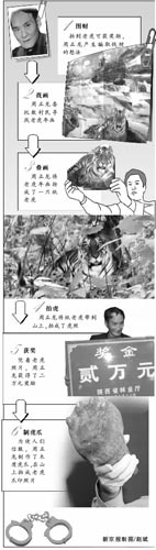 拍到老虎可獲獎勵,“周正龍由此萌生了拍攝假虎照,騙取錢財?shù)南敕ā?/p>